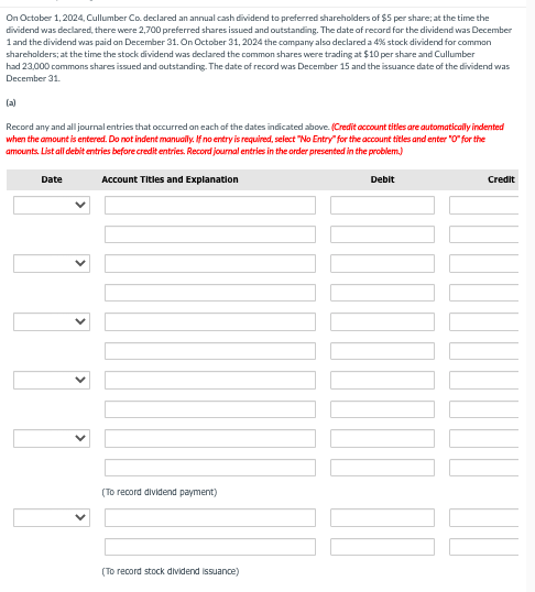 Source : www.facebook.comSolved On October 1, 2024, Cullumber Co declared an annual | Chegg.com